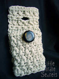 Once I got going with it, I wanted to keep using it! But seriously, how many towel hangers do we Birdies need? So I came up with a new pattern using this old favorite. This iPod or cell phone cozy was made using the crossed hdc stitch. I love the way this stitch looks with two strands of cotton yarn. Practice the crossed hdc a little, then try this fun pattern!