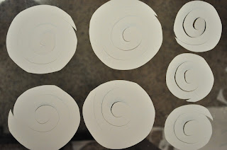 If you didn't watch the video, here's a quick how to on the spiral roses. Roll your spiral up from the outside in, making a tight spiral.